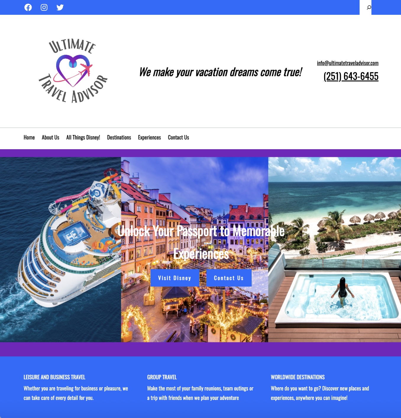 Created a modern, easy-to-navigate website for Ultimate Travel Advisor, helping them connect with clients and promote unforgettable travel experiences.